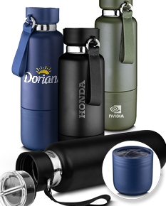 Garrafa térmica em aço inox com parede dupla isolada a vácuo com acabamento na parte externa em tinta pó. Capacidade de 500ml e cordão tipo mosquetão. Tampa rosqueável, vedada por um anel de silicone. Possui copo adicional rosqueável na parte inferior da garrafa. Parte superior da tampa acompanha um cordão adicional de 68cm para substituição. Permitindo uso do compartimento para pequenos objetos