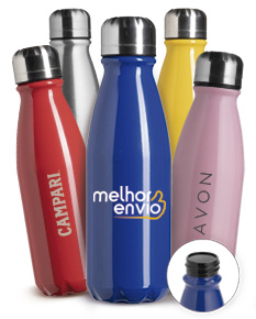 Garrafa em alumínio resistente com capacidade de até 550 ml, ideal para acompanhar a rotina diária. Possui tampa rosqueável que garante vedação segura e praticidade no transporte. Um brinde corporativo útil e versátil, perfeito para promover sua marca em academias, escritórios e ações promocionais.