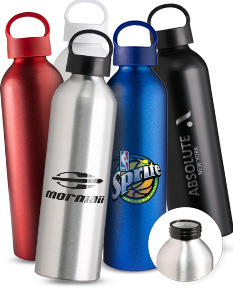 Garrafa de alumínio com capacidade de 630ml. Conta com uma tampa plástica rosqueável e alça integrada, facilitando o transporte. Ideal para uso diário e atividades ao ar livre.