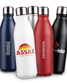 Garrafa confeccionada em alumínio com acabamento em verniz fosco, oferecendo visual moderno e agradável ao toque. Possui bocal com revestimento plástico e capacidade de até 750 ml, ideal para o consumo diário de bebidas. Conta com tampa rosqueável em alumínio com interior em plástico, que auxilia na vedação e no transporte com mais praticidade.