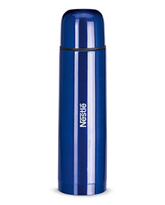 Garrafa em aço inox com parede dupla isolada a vácuo. Capacidade até 500 ml.