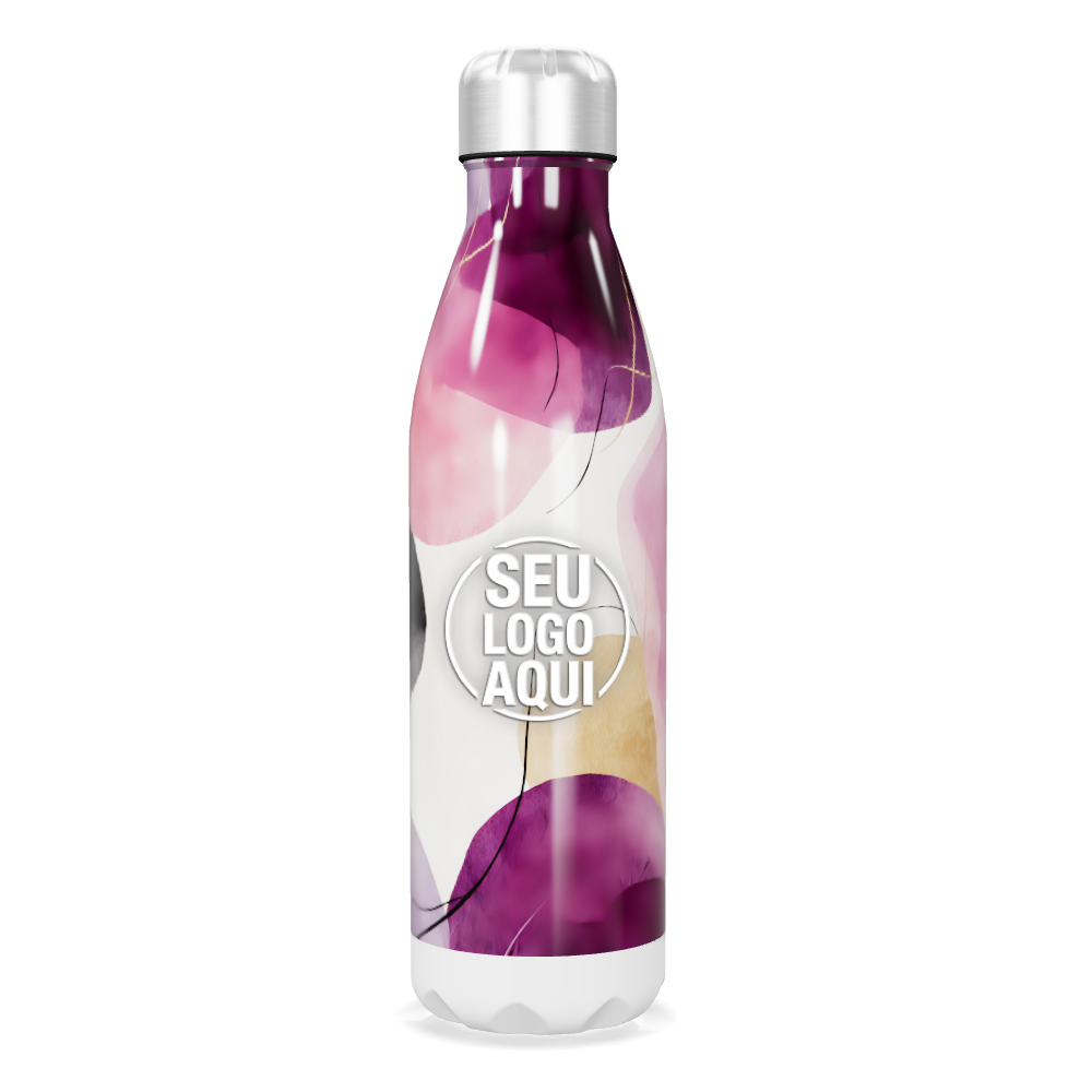 garrafa inox abstrata roxa e branca personalizada