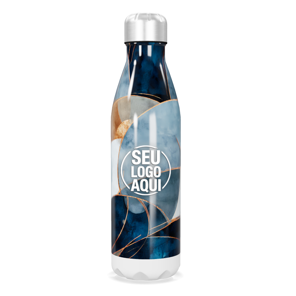 garrafa inox azul com estampa abstrata personalizada