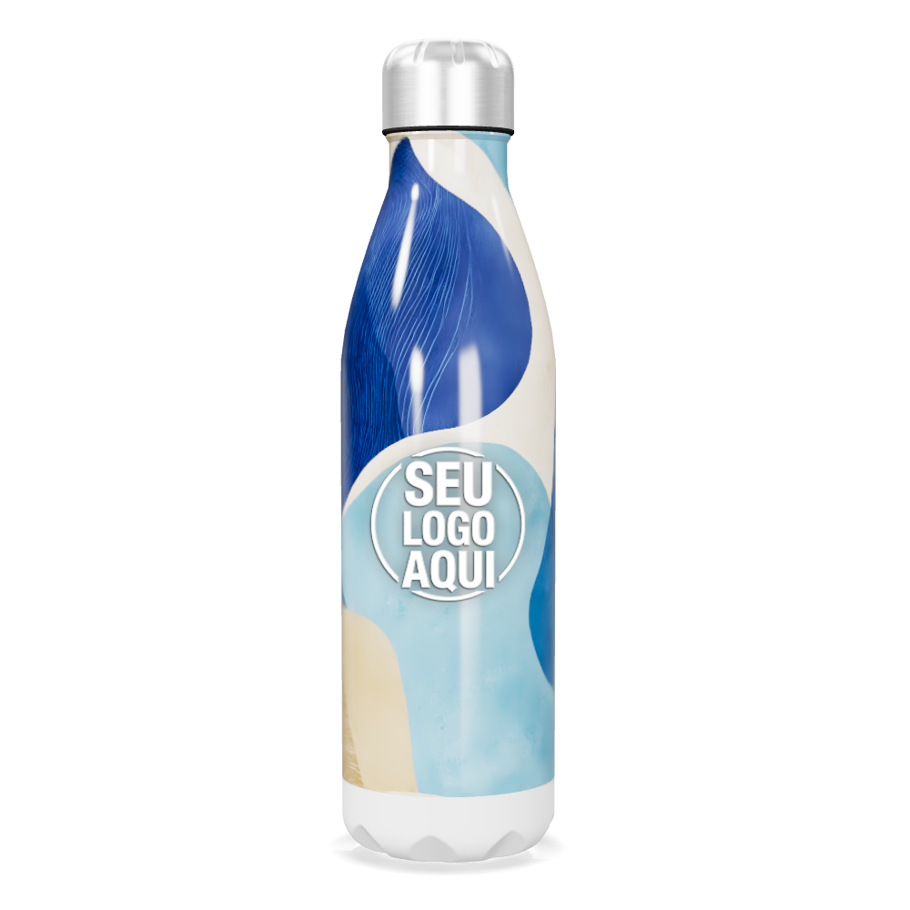 garrafa inox azul com estampa abstrata personalizada