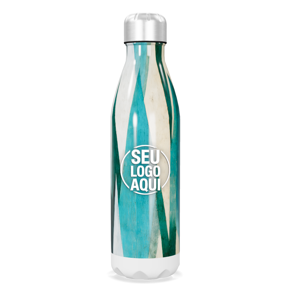 garrafa inox azul com estampa geométrica personalizada