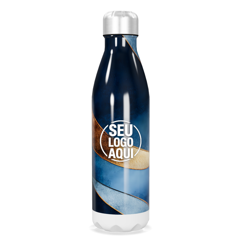 garrafa inox azul com listras elegantes personalizada