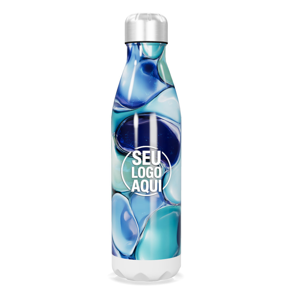 Garrafa de aço inoxidável com estampa abstrata em tom de azul, ideal para manter sua bebida preferida na temperatura ideal por mais tempo. Perfeita para te acompanhar em suas atividades diárias, seja no trabalho, na academia ou em momentos de lazer. Leve, resistente e prática, é a escolha certa para quem busca estilo e funcionalidade em um único produto.