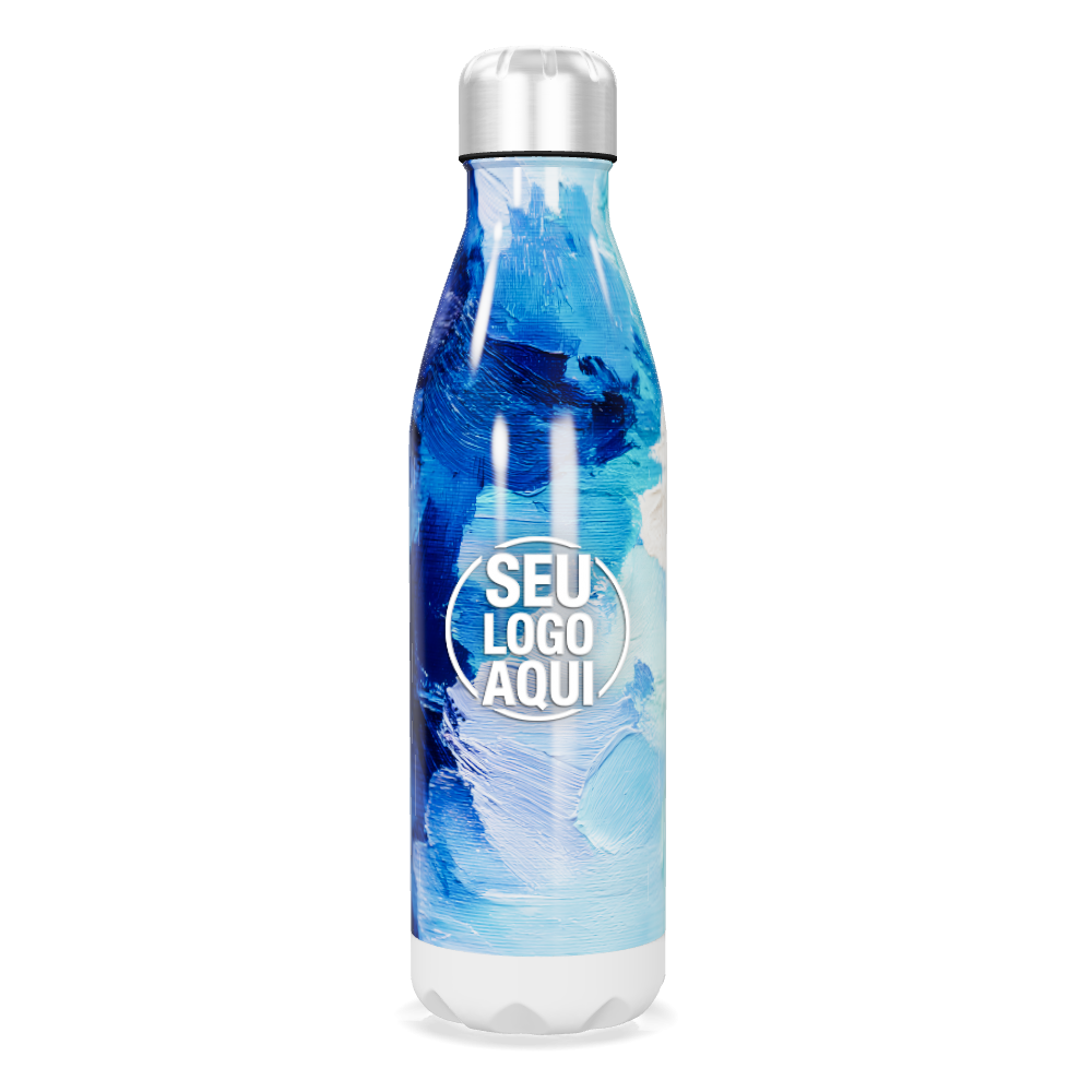 garrafa inox azul estampa abstrata personalizada