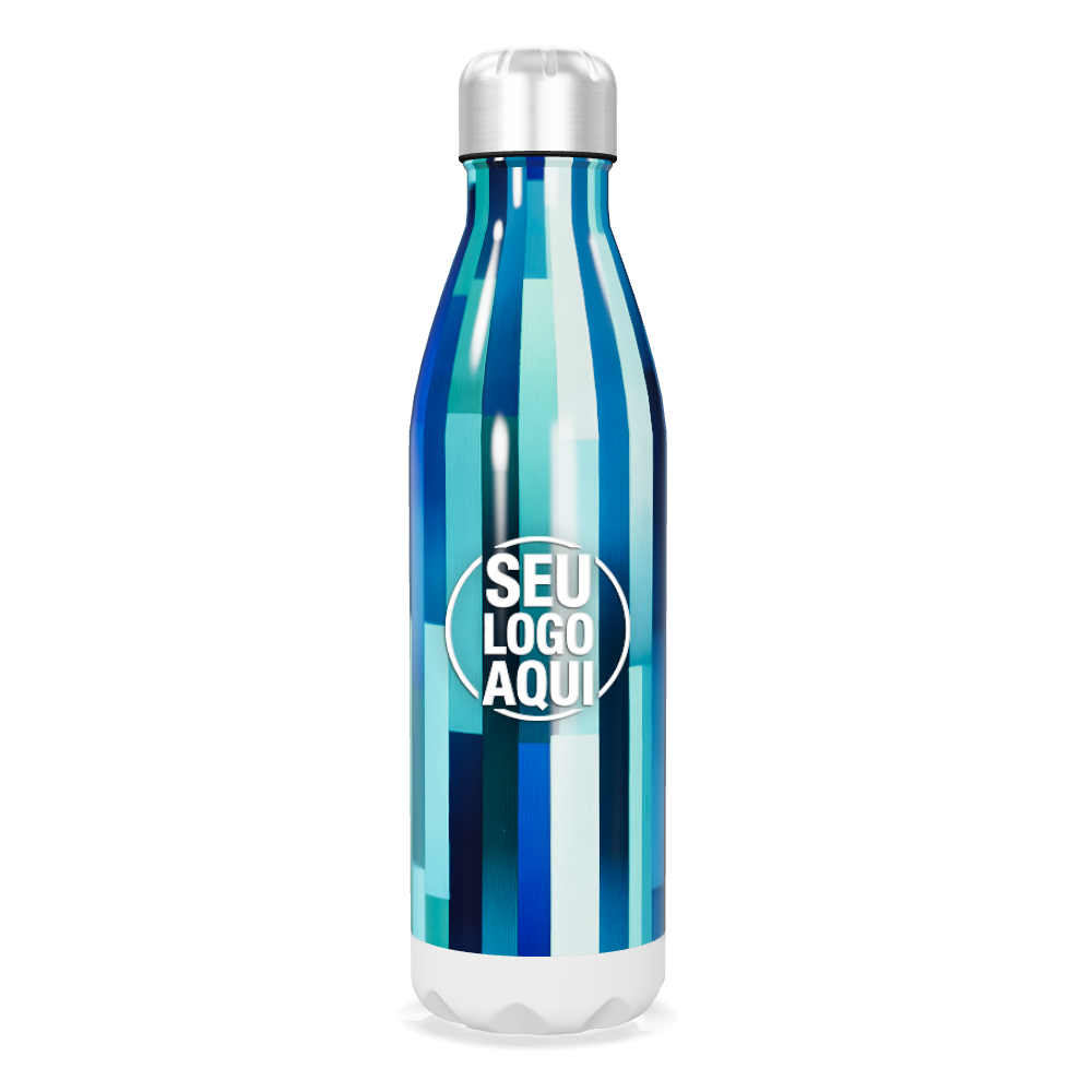 Garrafa de inox com capacidade para 750ml, ideal para manter suas bebidas na temperatura desejada durante todo o dia. Seu design listrado em tons de azul traz um toque de estilo e praticidade para o seu dia a dia. Perfeita para te acompanhar em todas as suas atividades, seja no trabalho, academia ou passeios ao ar livre.
