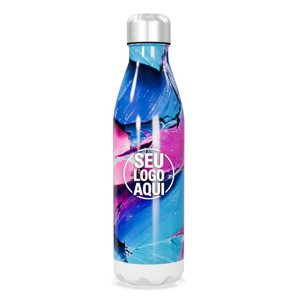 garrafa inox azul rosa abstrata personalizada