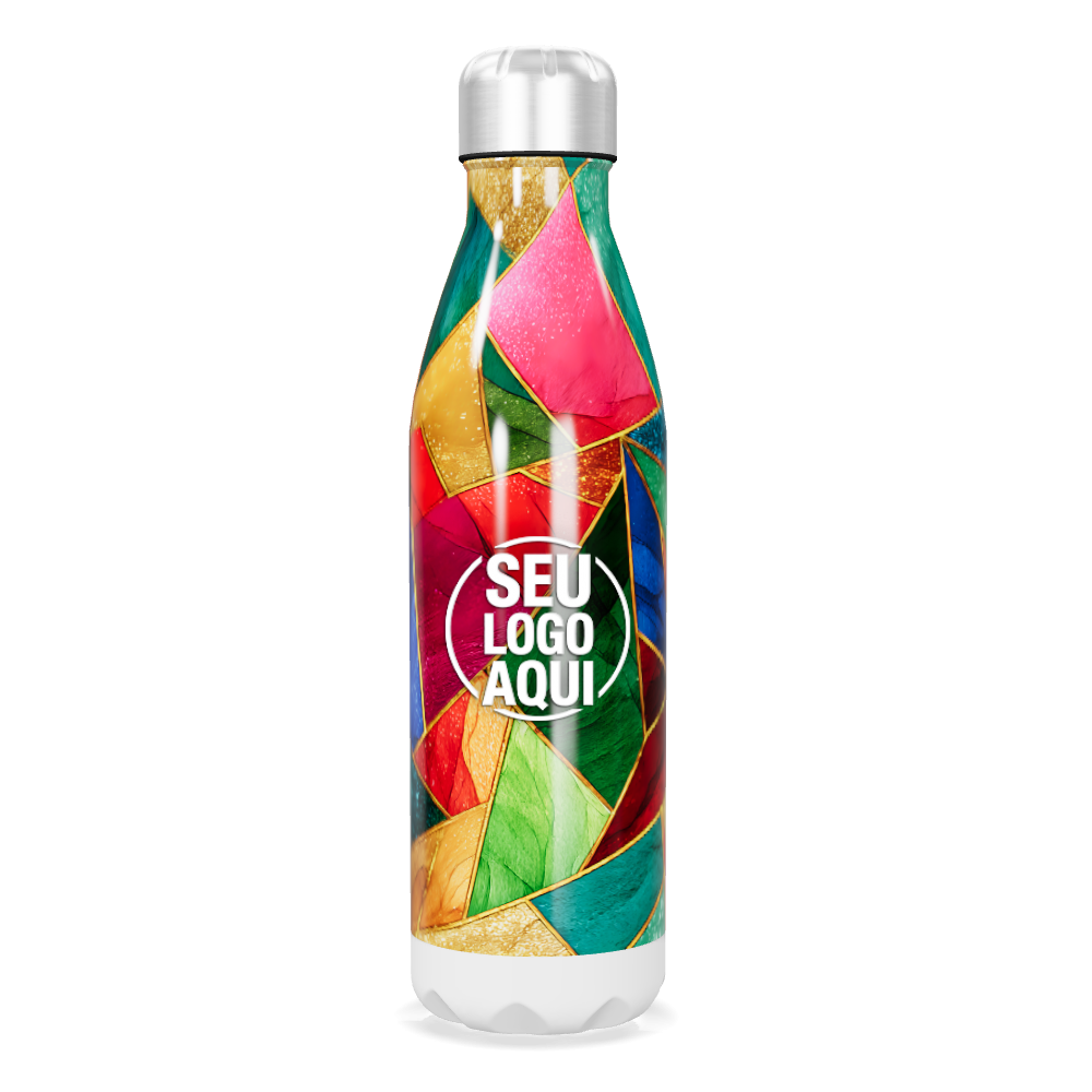 garrafa inox colorida com estampa geométrica personalizada