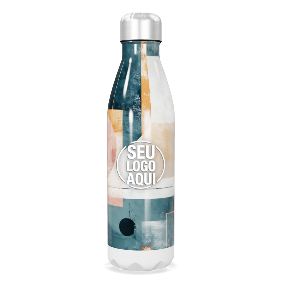 Garrafa de aço inoxidável com estampa abstrata colorida, ideal para manter suas bebidas sempre na temperatura certa. Perfeita para te acompanhar em qualquer momento do dia, seja na academia, no trabalho ou em um passeio ao ar livre. Prática e estilosa, é uma ótima opção para quem busca funcionalidade e personalidade em um único produto.