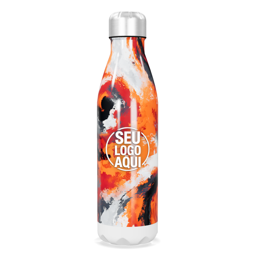 Garrafa Inox com estampa abstrata laranja, é perfeita para te acompanhar em todas as suas aventuras do dia a dia. Resistente e prática, essa garrafa é ideal para manter suas bebidas na temperatura certa por mais tempo. Leve já a sua!