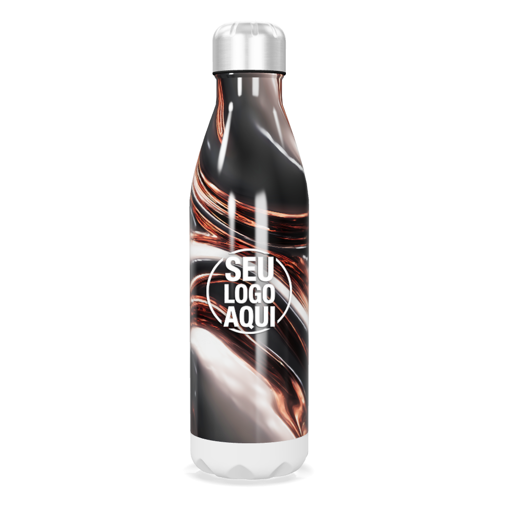 Estiloso para o dia a dia: garrafa em inox com estampa abstrata metalizada.