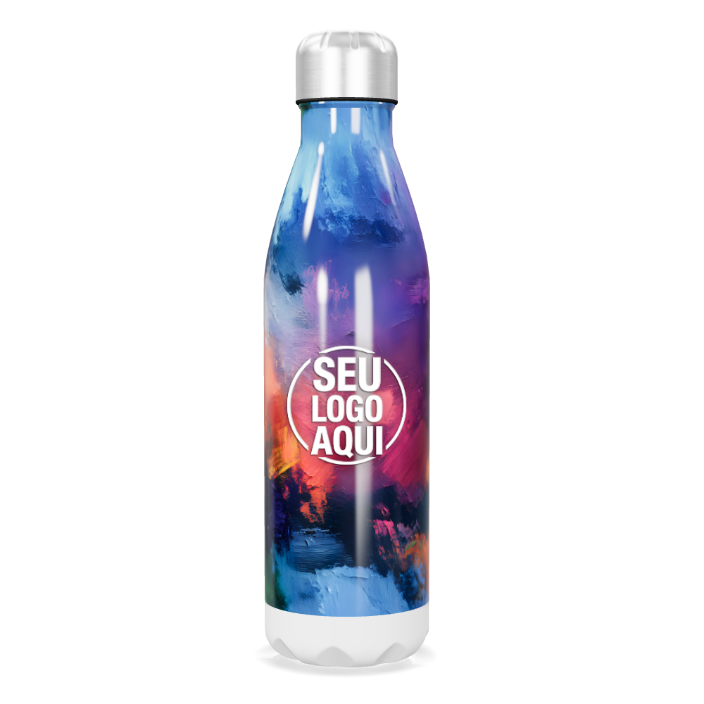 Esta bela garrafa de aço inoxidável apresenta uma estampa artística colorida que certamente irá adicionar um toque de estilo único ao seu dia a dia. Feita com materiais de alta qualidade, esta garrafa é perfeita para manter suas bebidas favoritas na temperatura ideal por mais tempo. Leve praticidade e elegância para onde quer que você vá com esta garrafa inox estampada.