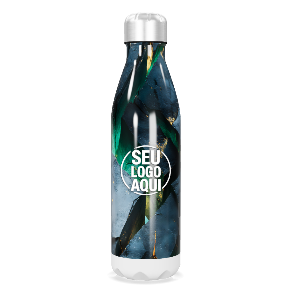 Esta garrafa em inox possui uma estampa nas cores azul e verde, garantindo um visual moderno e estiloso. Perfeita para levar suas bebidas preferidas para onde quer que você vá, mantendo-as na temperatura ideal por mais tempo. Ideal para quem valoriza praticidade e estilo no dia a dia.
