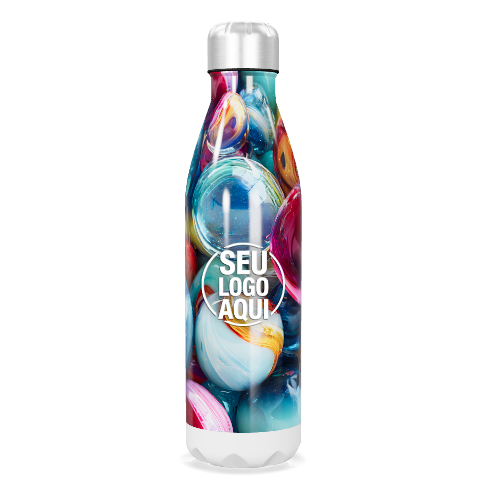 garrafa inox estampa bolhas coloridas personalizada