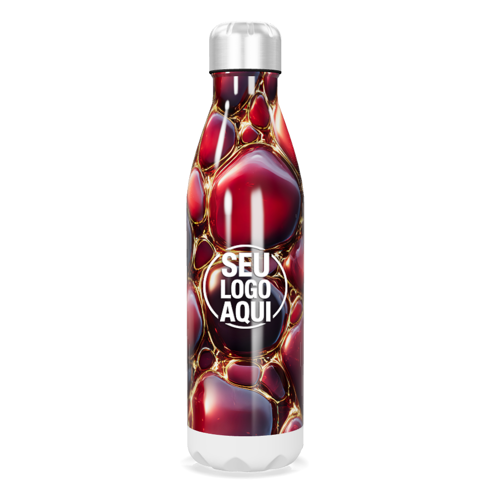 garrafa inox estampa bolhas vermelhas personalizada