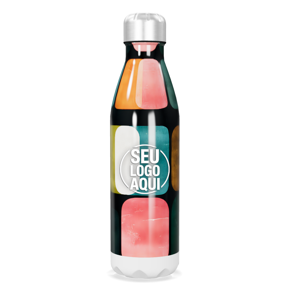 garrafa inox estampa colorida geométrica personalizada