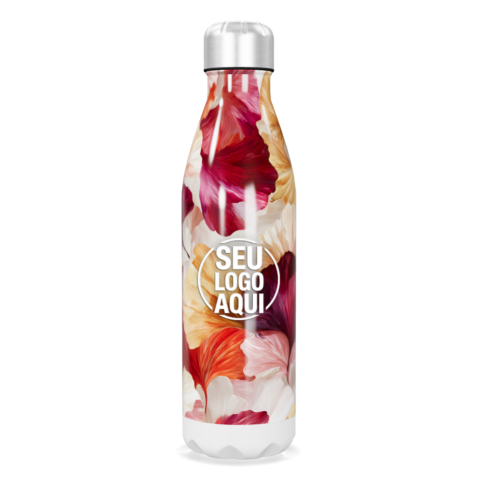 "Adicione um toque de elegância e sofisticação ao seu dia a dia com esta linda garrafa em aço inoxidável, estampada com um padrão floral colorido. Perfeita para manter suas bebidas na temperatura ideal, seja no escritório, academia ou em passeios ao ar livre. Prática e estilosa, é o acessório perfeito para quem valoriza qualidade e bom gosto."