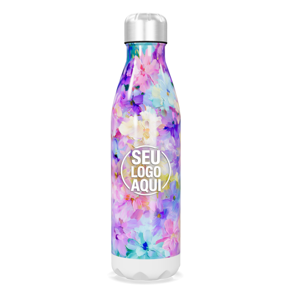 garrafa inox estampa floral colorida personalizada
