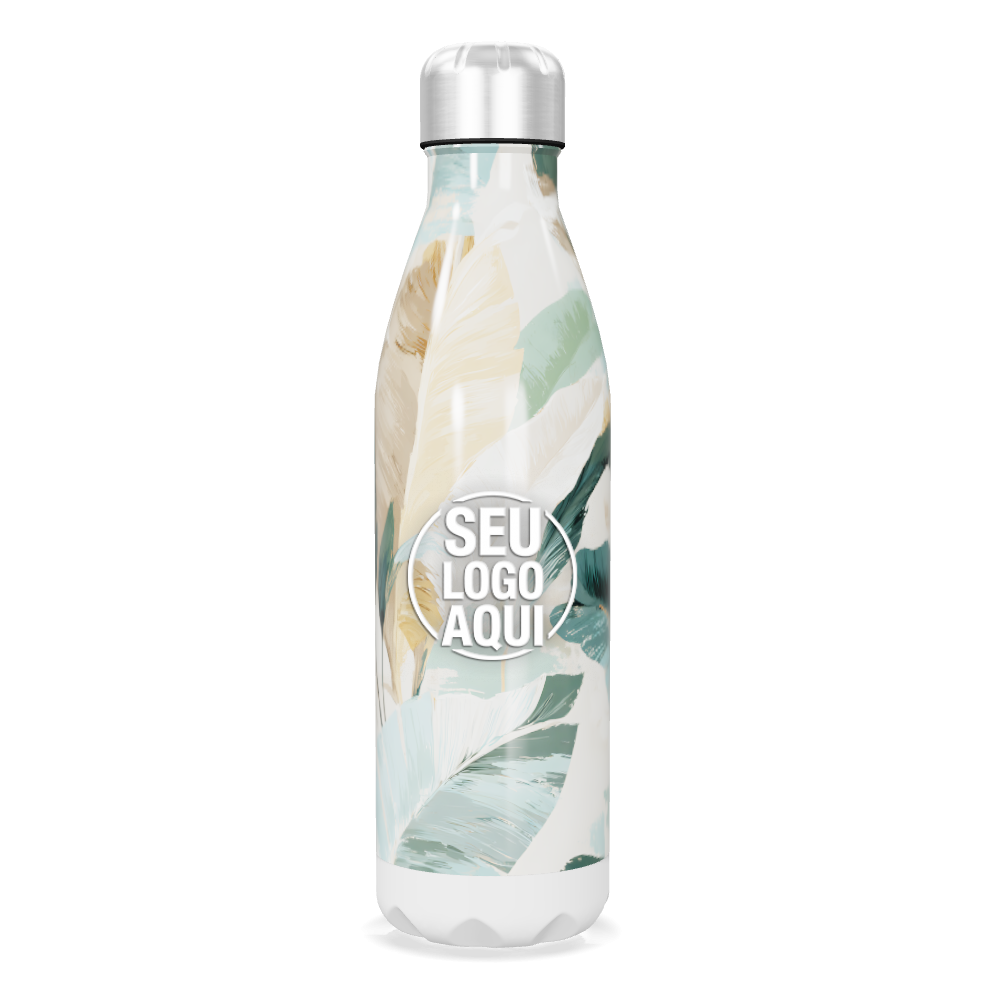 garrafa inox estampa folhagem colorida personalizada