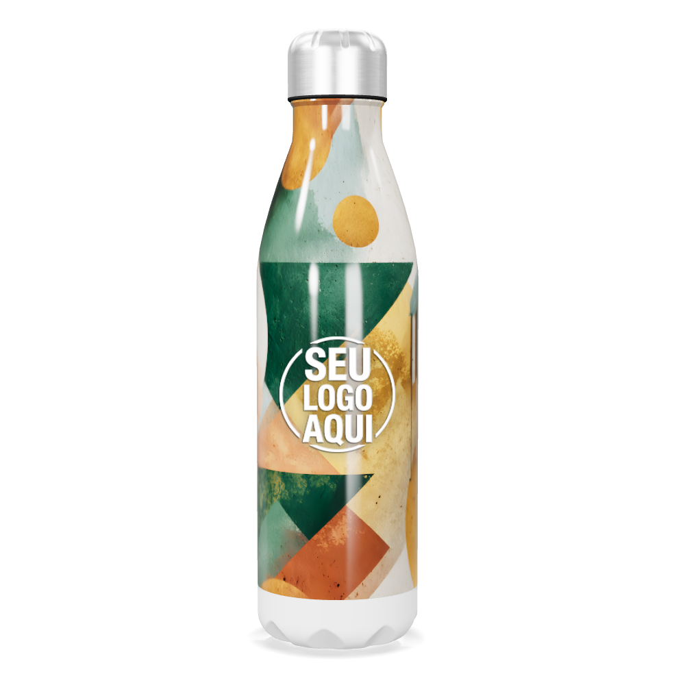 garrafa inox estampa geométrica colorida personalizada