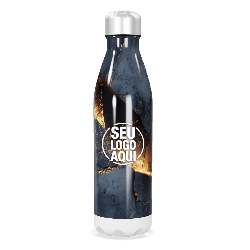 Mantenha suas bebidas favoritas sempre na temperatura ideal com esta garrafa em inox, estampada com um padrão moderno de mármore azul. Perfeita para te acompanhar em qualquer ocasião, garantindo estilo e praticidade.