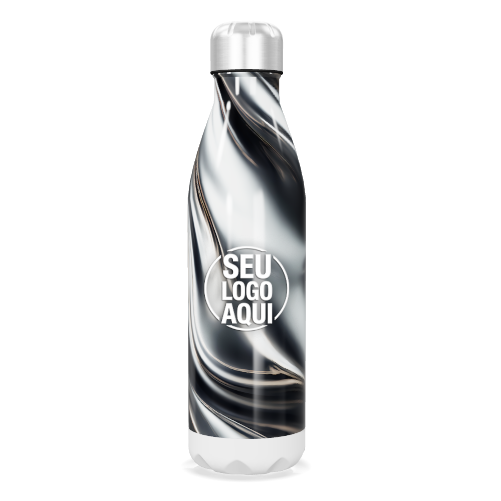 garrafa inox estampa marmorizada preta e branca personalizada
