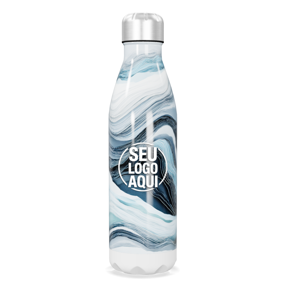 garrafa inox estampa ondas azul personalizada
