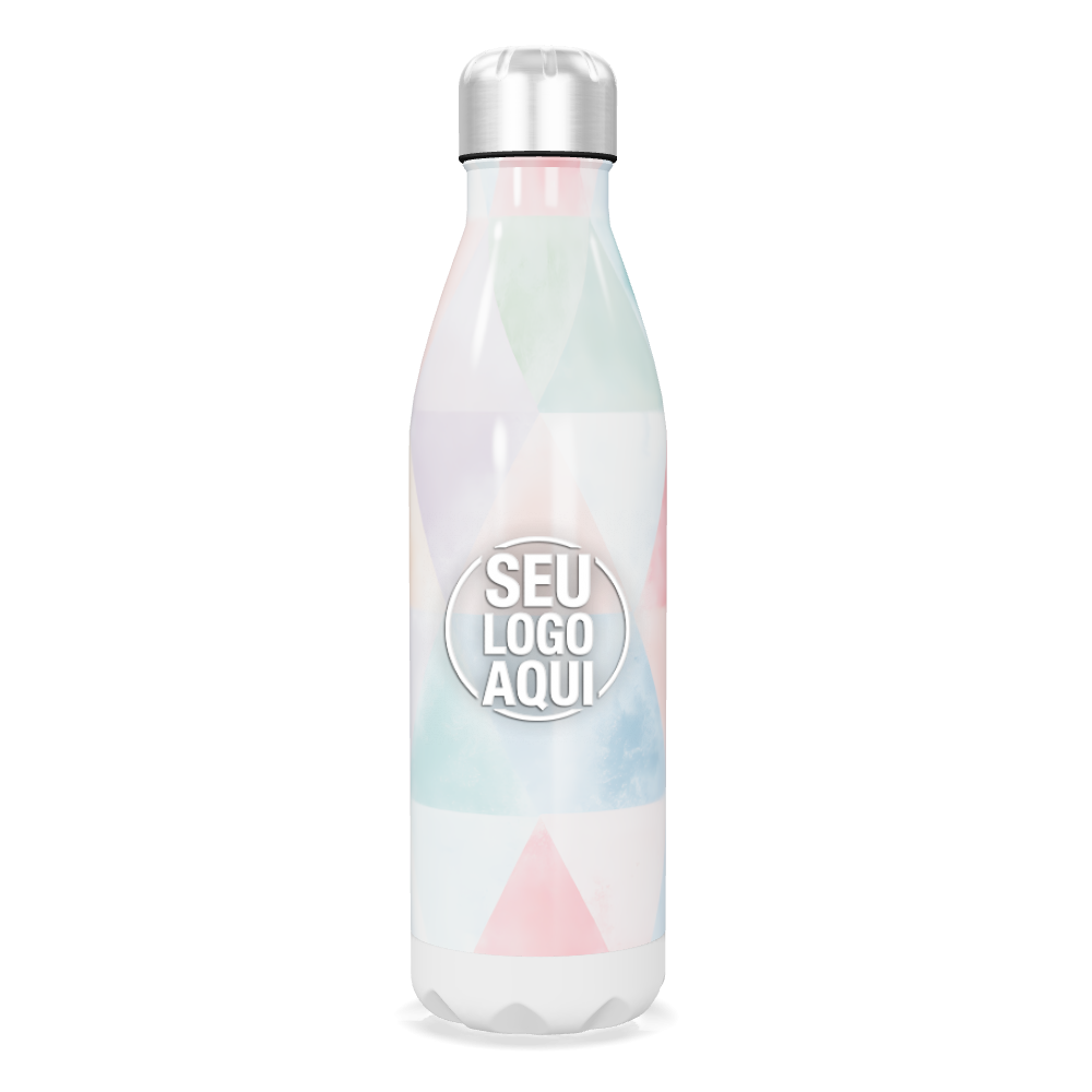 garrafa inox estampada geométrica pastel personalizada
