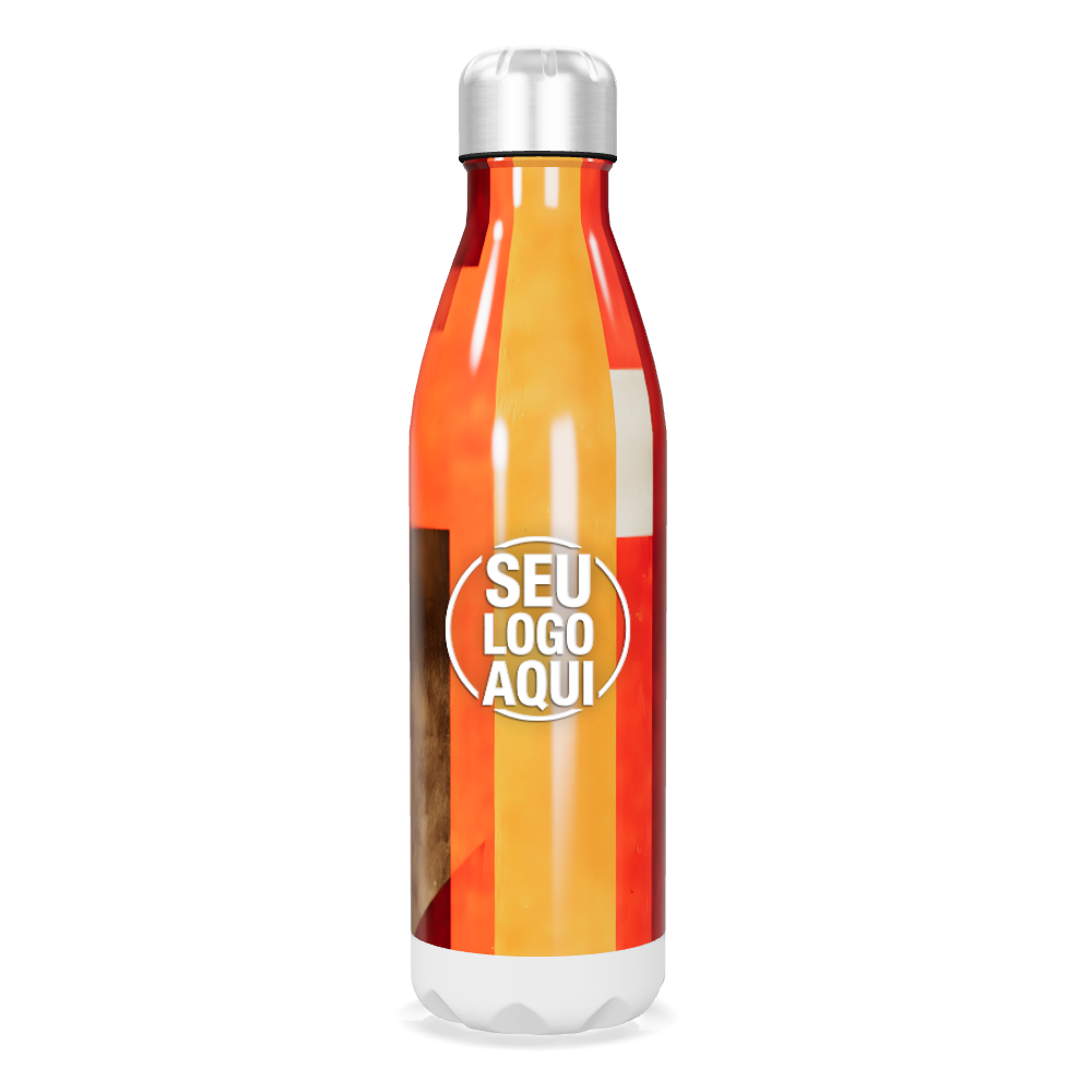 garrafa inox estampada laranja e vermelho personalizada