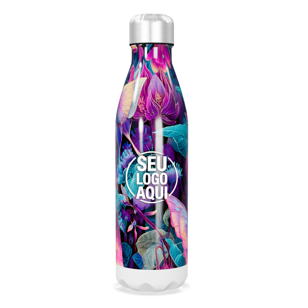 garrafa inox floral colorida personalizada
