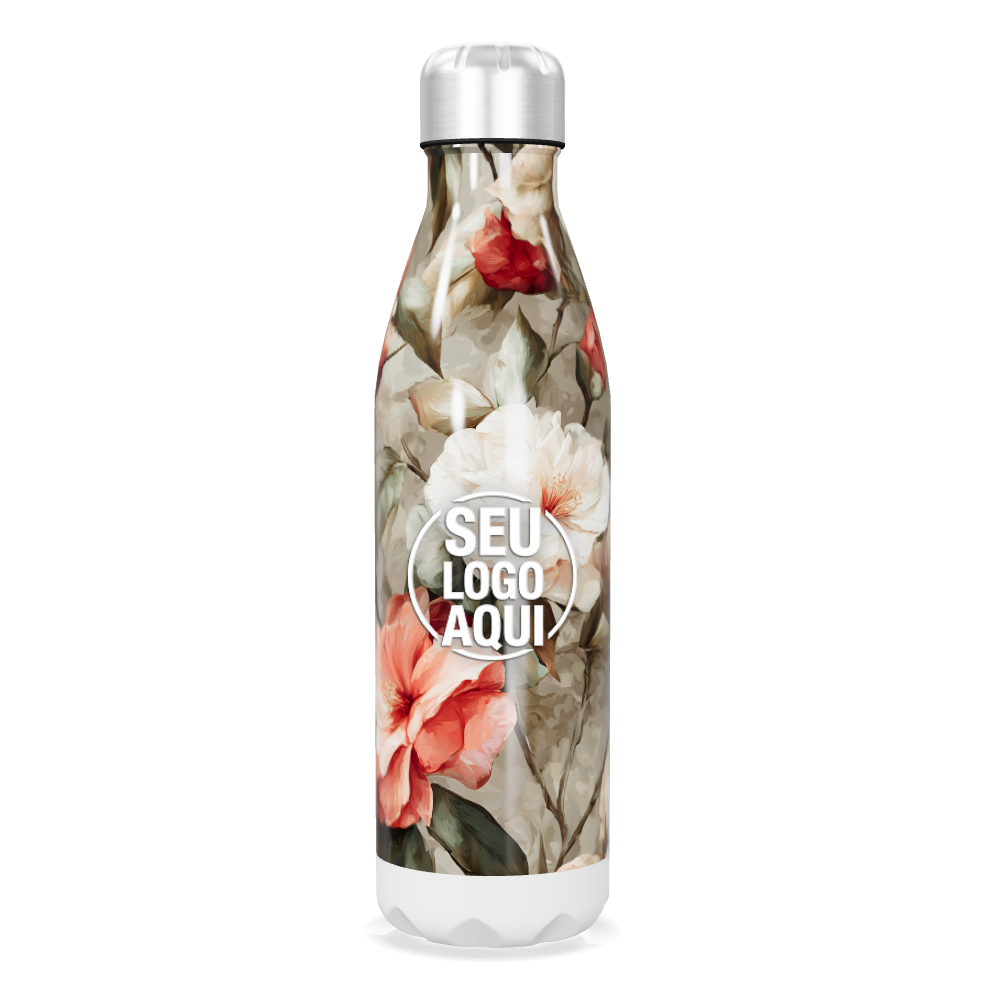 garrafa inox floral com tampa prata personalizada