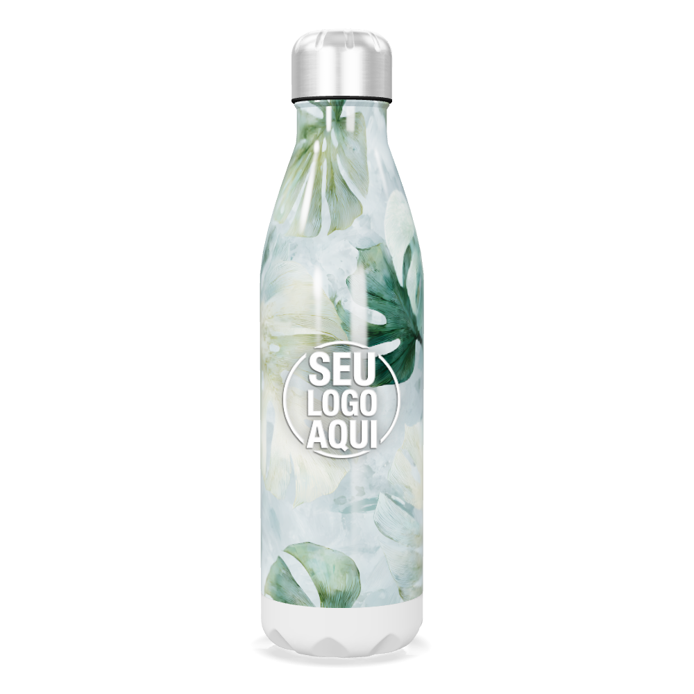 garrafa inox floral verde e branco personalizada