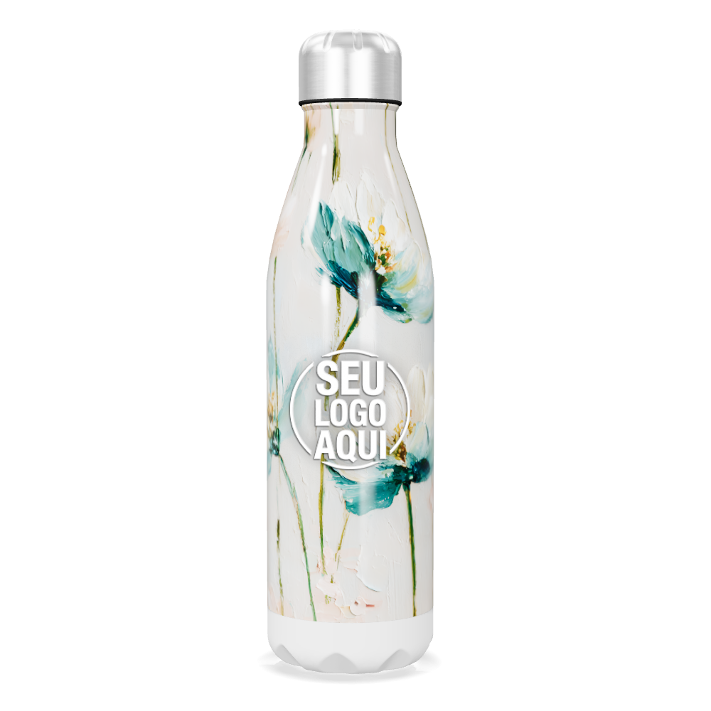garrafa inox flores azul branca personalizada
