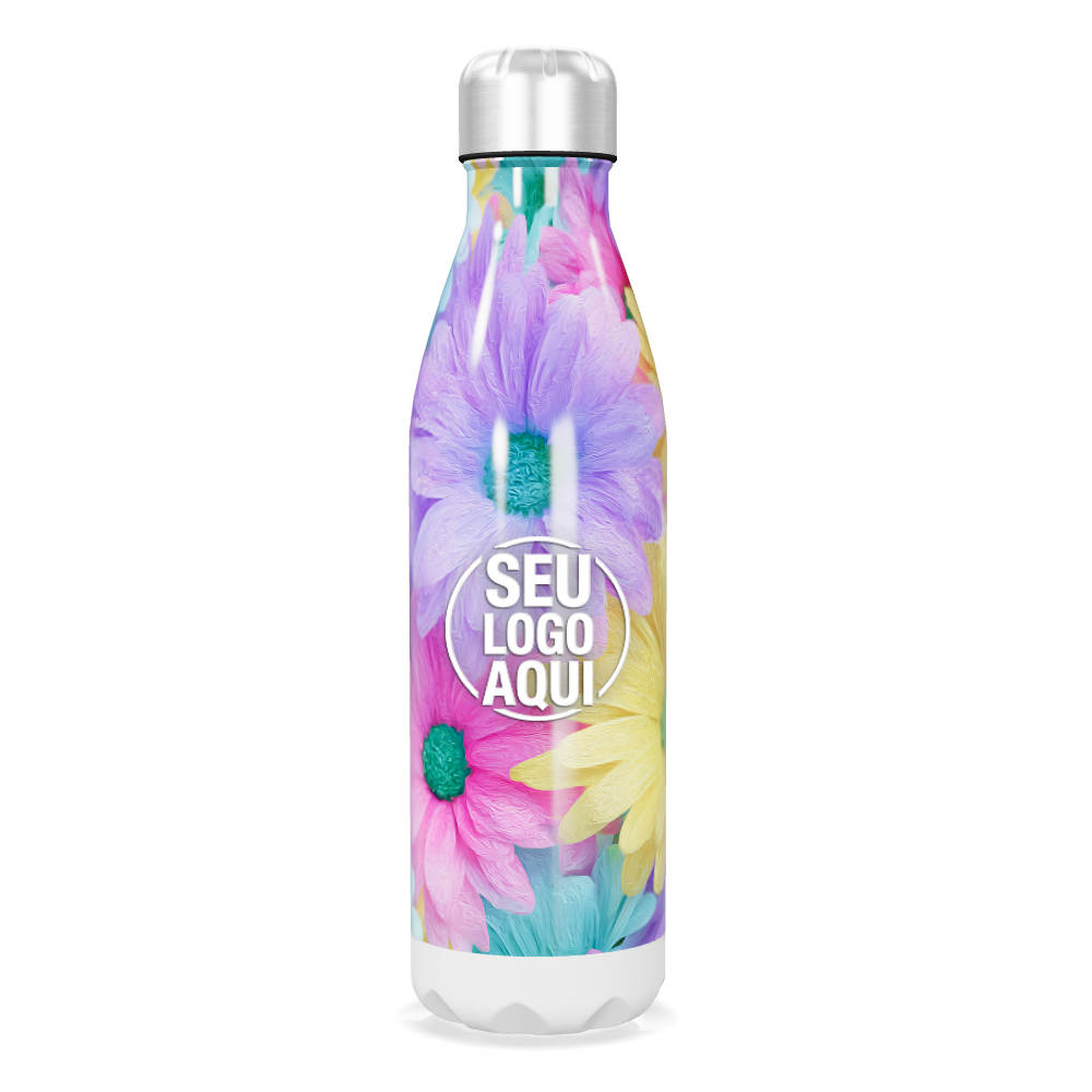 garrafa inox flores coloridas personalizada