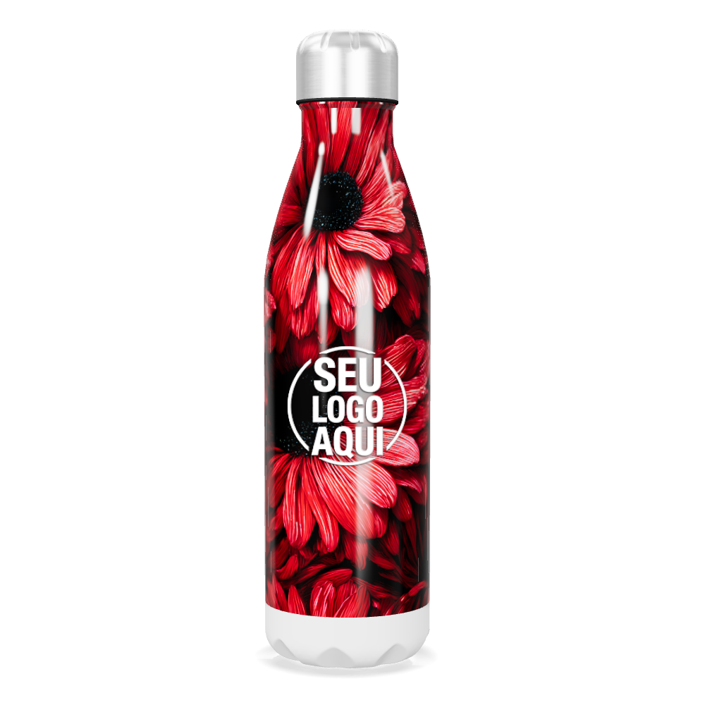 garrafa inox flores vermelhas personalizada