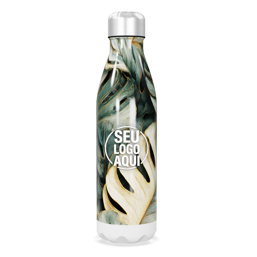 garrafa inox folhagem tropical personalizada