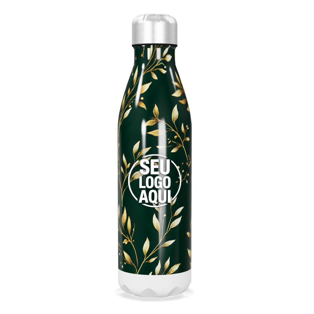 garrafa inox folhas douradas verde personalizada