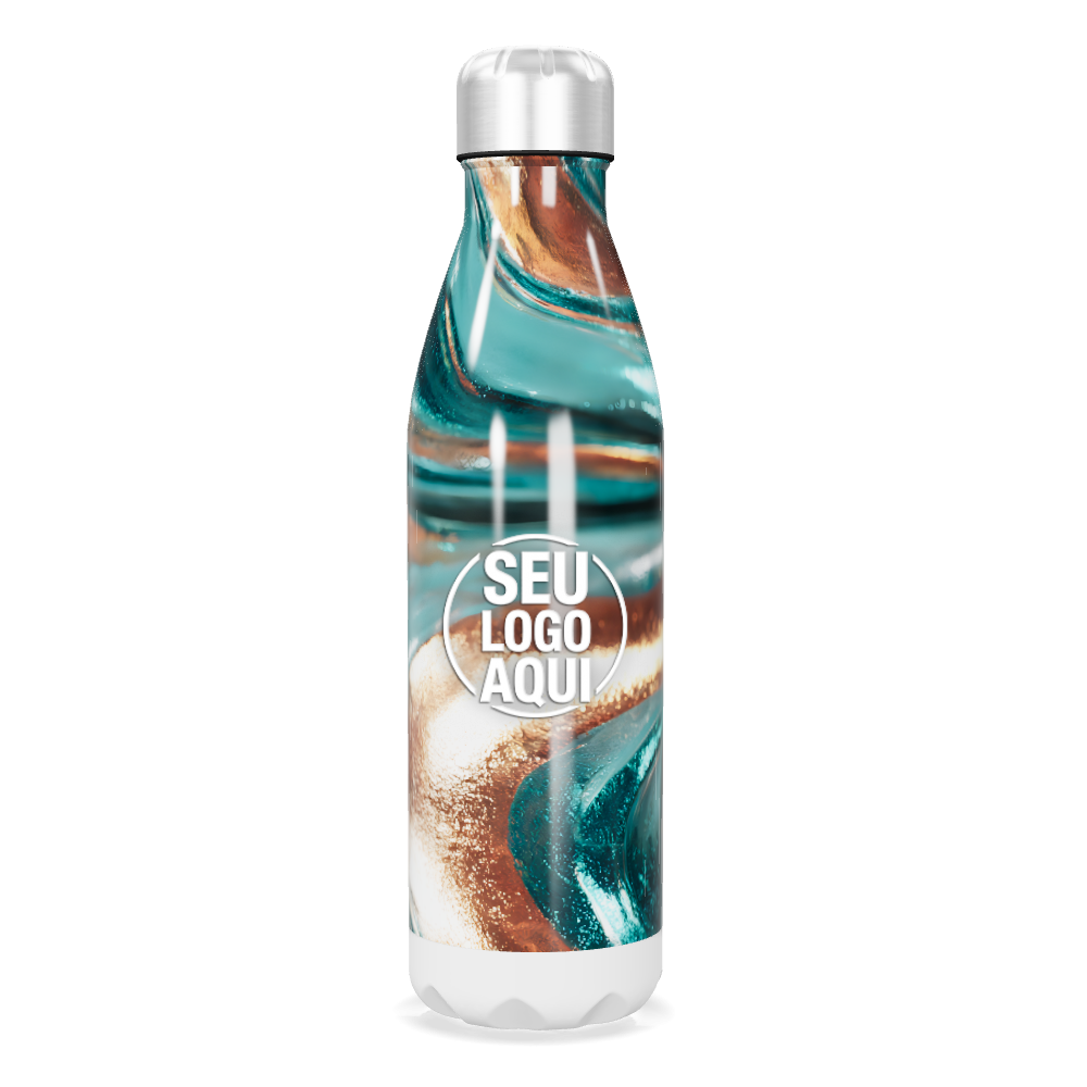 garrafa inox mármore verde e dourado personalizada