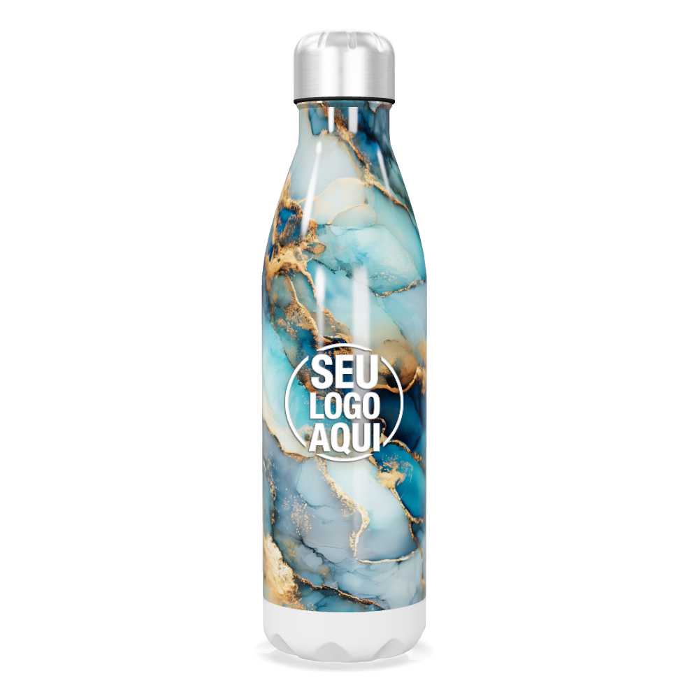 garrafa inox marmorizada azul personalizada