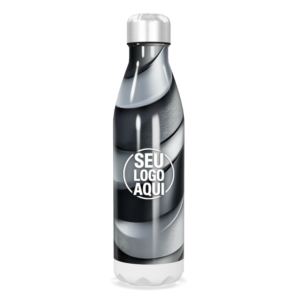 garrafa inox preto e prata espiral personalizada