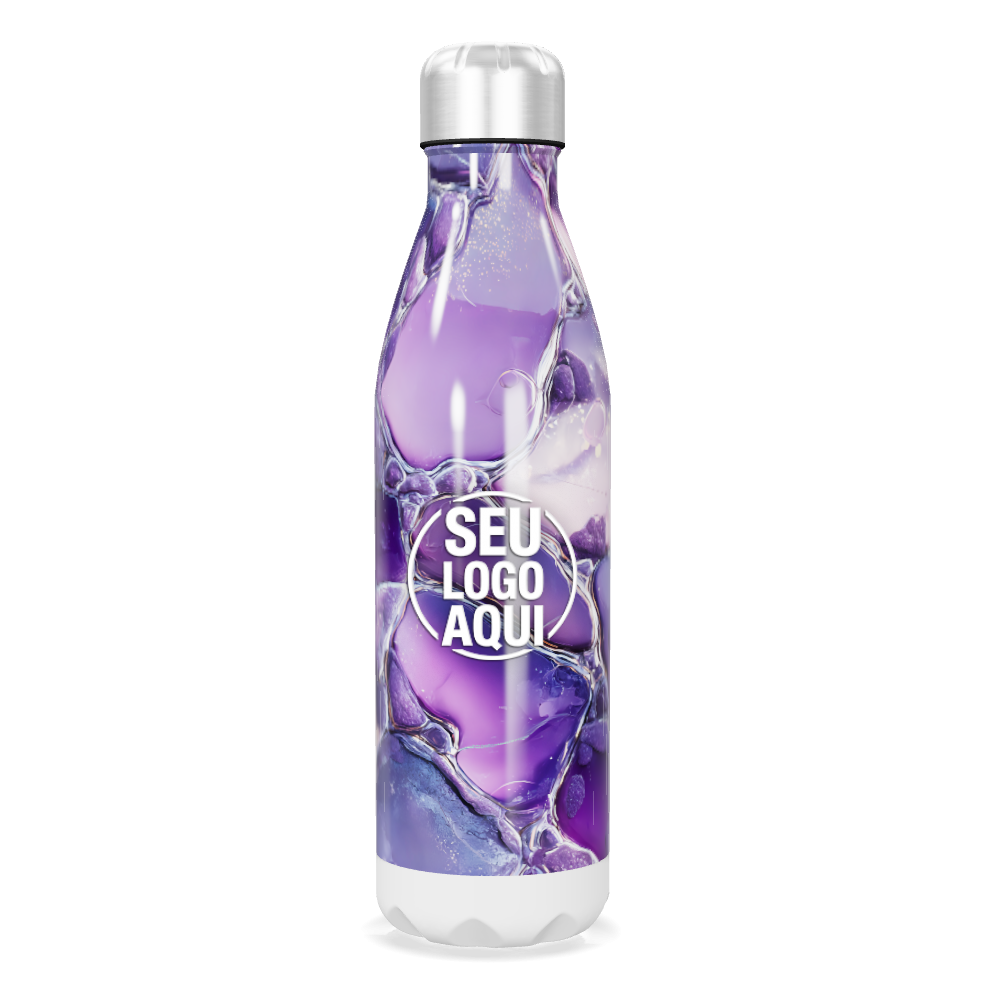 Esta garrafa de aço inoxidável é perfeita para te acompanhar no seu dia a dia, mantendo suas bebidas favoritas na temperatura ideal por muito mais tempo. Seu acabamento marmorizado em tons roxos traz um toque de estilo e sofisticação ao seu estilo. Leve praticidade e elegância com você em todos os lugares com esta garrafa de design exclusivo.