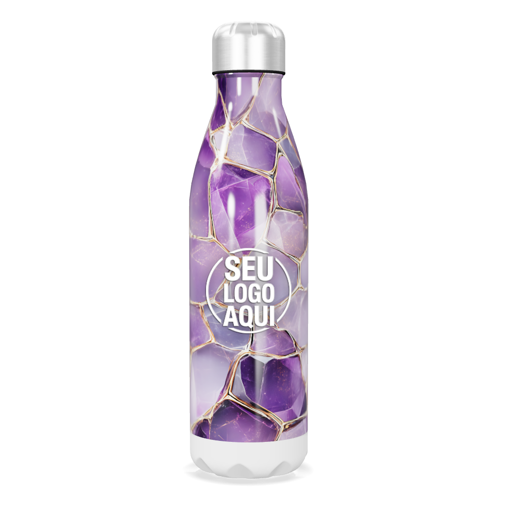 garrafa inox roxa com estampa geométrica personalizada