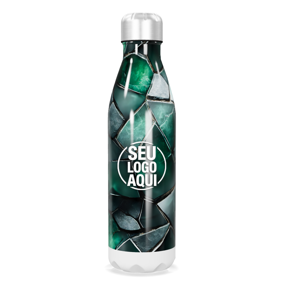 garrafa inox verde com estampa geométrica personalizada