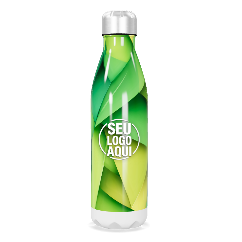 garrafa inox verde estampa geométrica personalizada