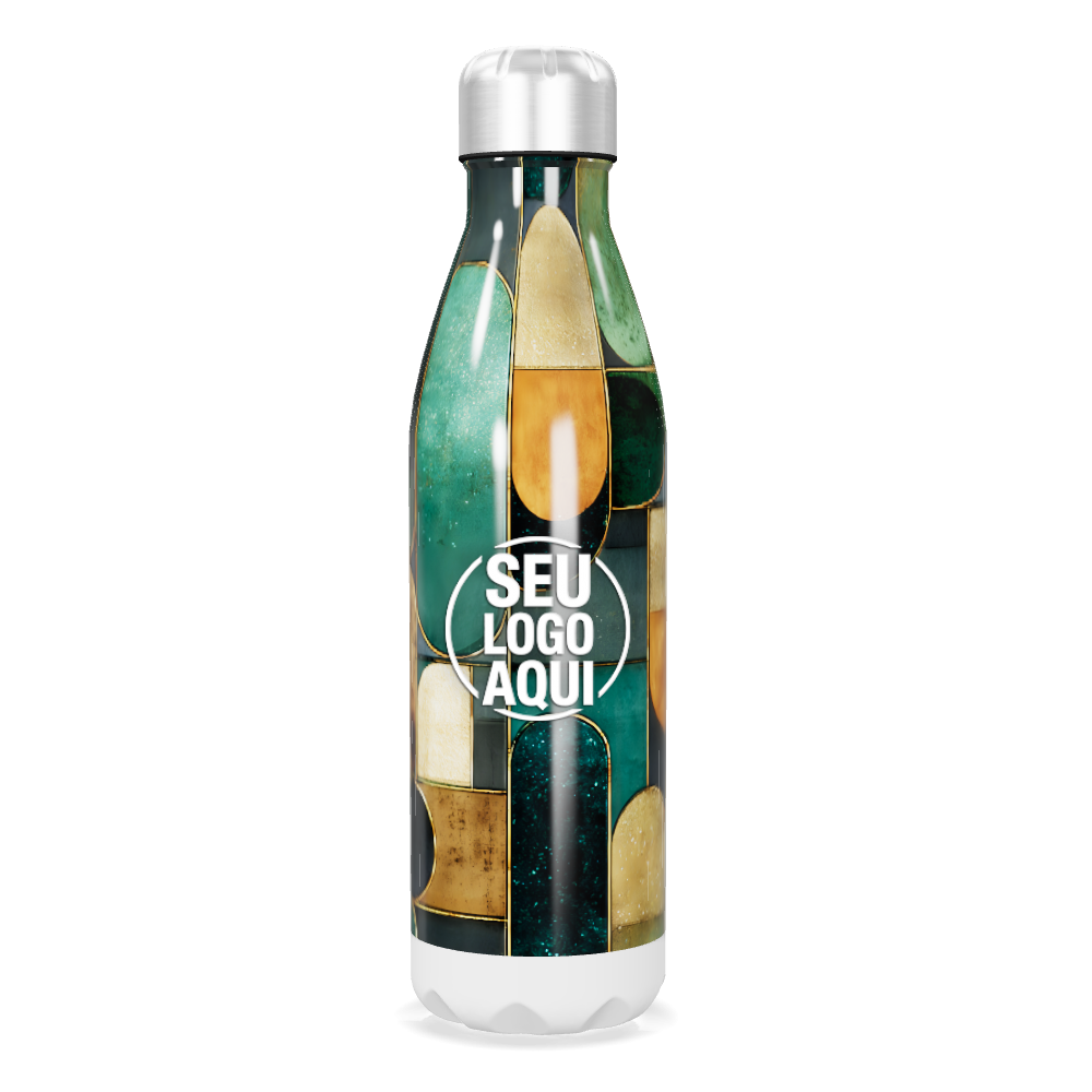 garrafa inox verde estampa geométrica personalizada