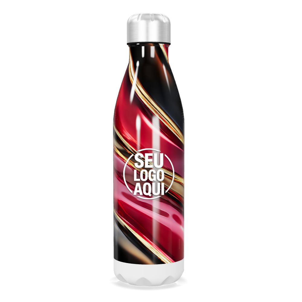 garrafa inox vermelha com listras elegantes personalizada