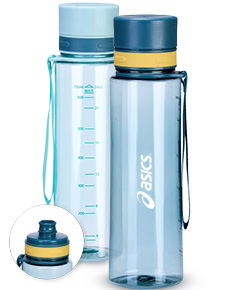 Garrafa plástica com capacidade máxima de 780ml e marcação de volume. Possui tampa rosqueável com protetor para o bocal, revestimento emborracado e alça em nylon para transporte.